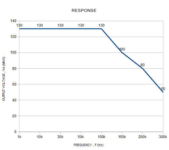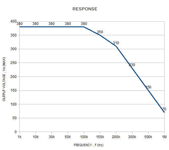 頻寬 | - | 400K Hz-360V pk-pk | - | - | 140V pk-pk @ 15kHz |